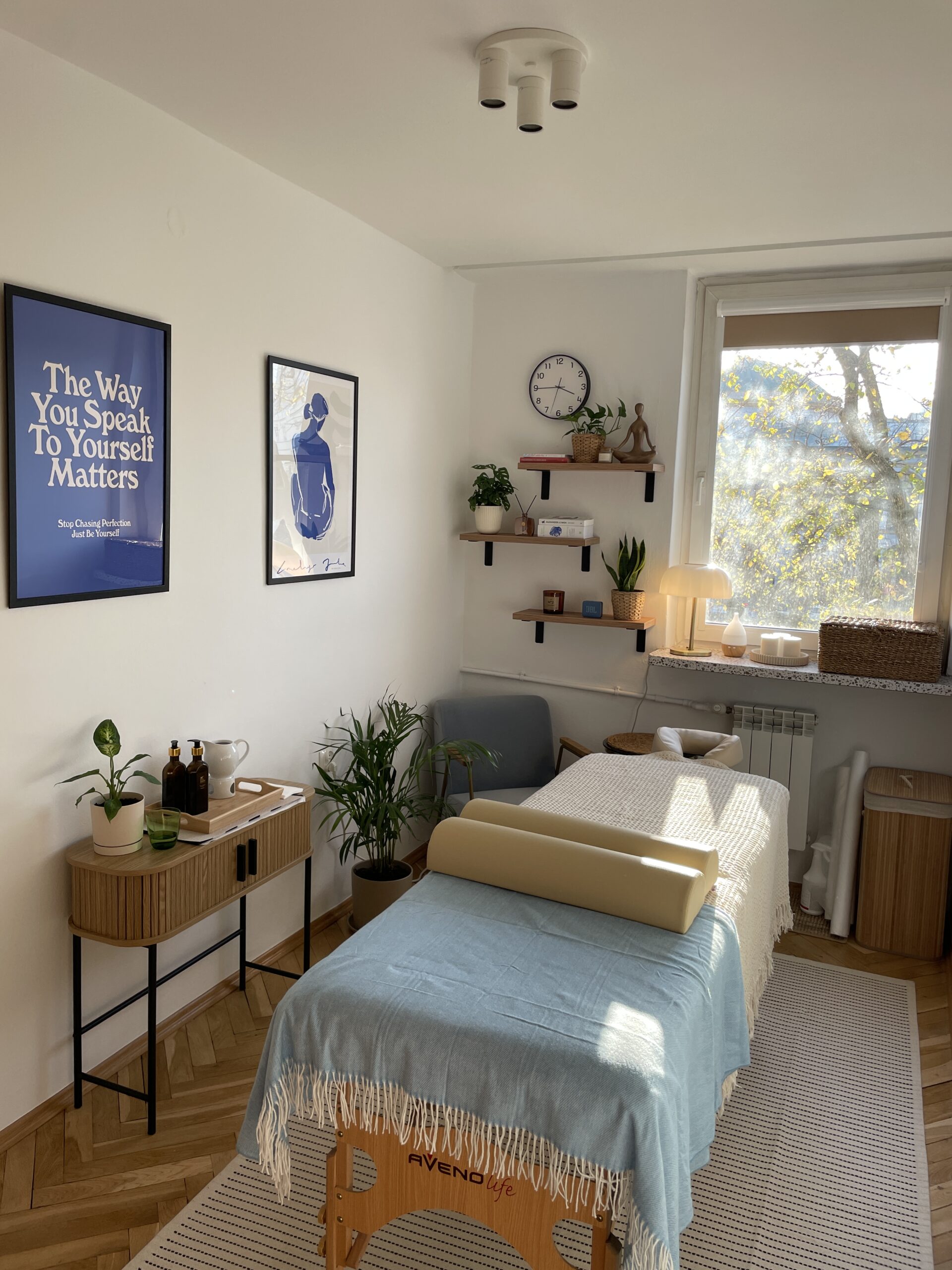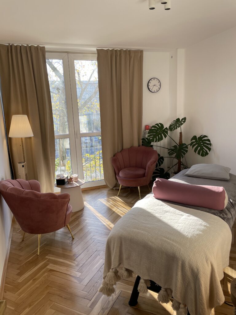 To kameralny gabinet terapeutyczny, w którym łączymy terapię manualną, masaż, regulację układu nerwowego i podejście psychosomatyczne.